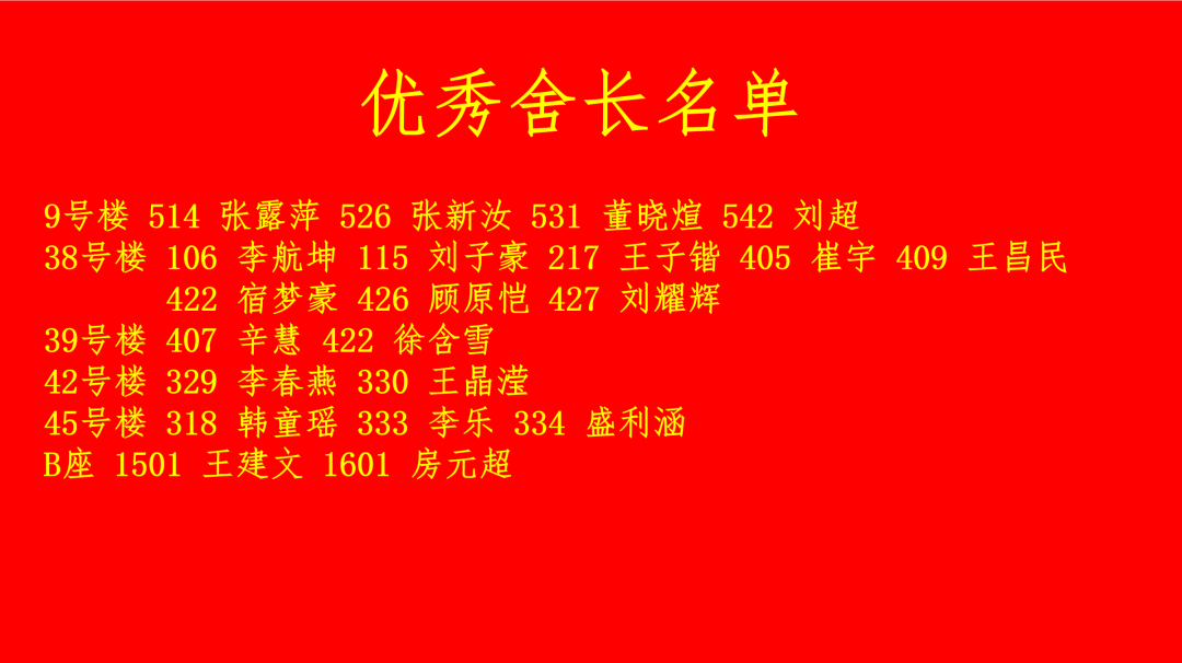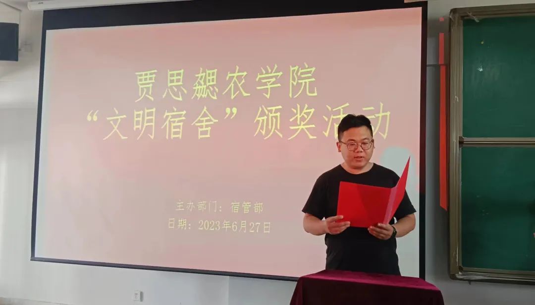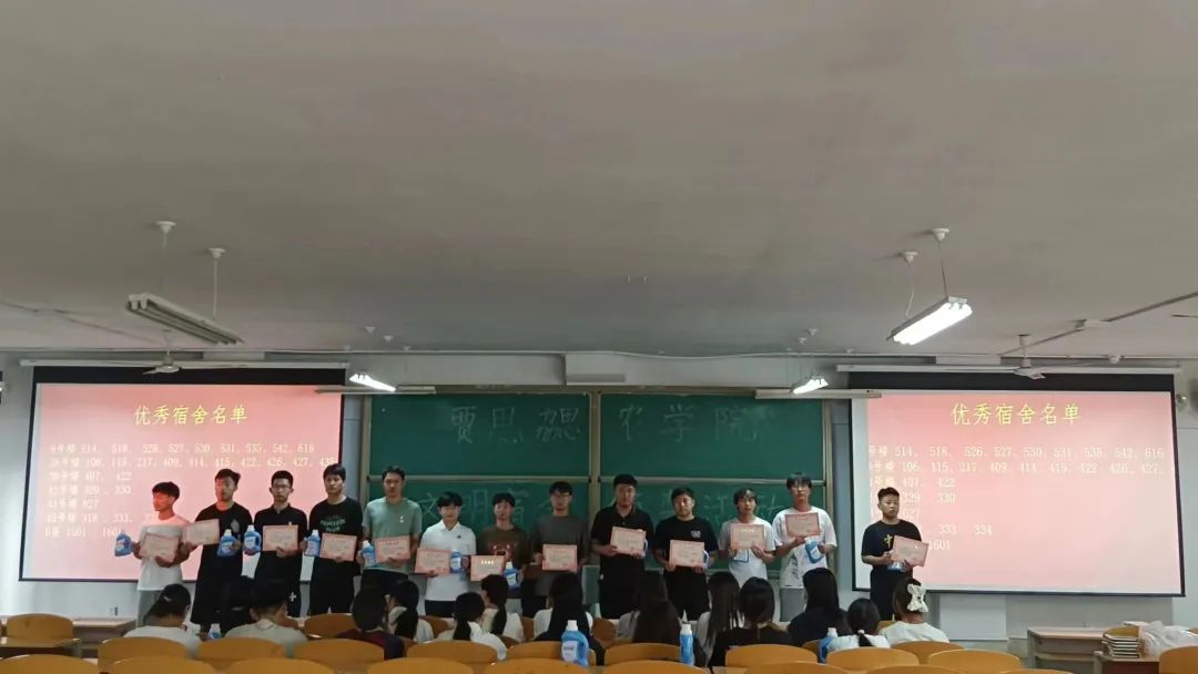 活动首先由由葛树喆老师宣读《2138cc太阳集团官网入口文明宿舍评比标准》,王倩倩老师、王淑芹老师宣读文明宿舍名单、优秀舍长名单。本着公平公正公开的原则,最终评选出29个优秀宿舍、21位优秀舍长,由葛树喆老师、王倩倩老师为文明宿舍获奖者颁奖;刘建伟书记、王淑芹老师为优秀舍长获奖者颁奖。