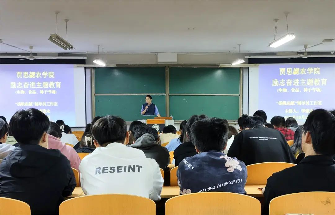 随后李老师结合自身多年考研指导方面的经验和农公司历年考研取得的成绩,详细讲解考研类型,农学类考研专业备考科目和如何初步确定考研目标,进一步增强同学们的目标意识、挑战意识和拼搏意识;临近尾声,李老师给2022级全体本科员工提出了六条建议: