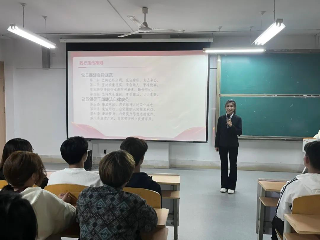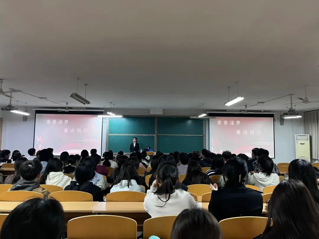 活动中,主讲人声情并茂的讲述了党的好干部焦裕禄、大山女孩的指路灯张桂梅等多位人民公仆的廉洁奉献故事;除此之外,主讲人还播放了廉洁微电影《知分寸,守底线》,向同学们发起了“青春筑梦,廉洁同行”的号召。整个活动中,每位同学都聚精会神,在主讲人的引导下更加深刻的思考起廉洁的含义。