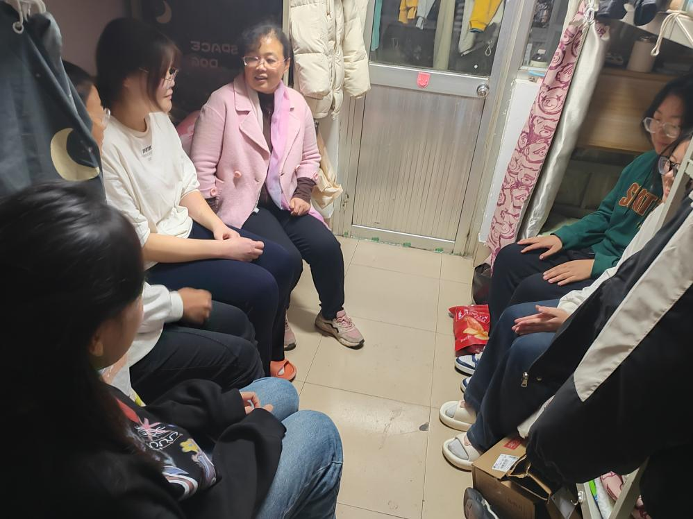 活动中,于老师带领员工干部走进员工宿舍,深入了解同学们的生活状况,开展寝室心理氛围调查工作,为学子们带来温暖。在走访查寝的过程中,于老师深入了解同学们在学习和生活中遇到的各类问题,实时为同学们答疑解惑。积极引导员工换位思考,帮助同学们找到良好宿舍关系形成的能量源和平衡点。在课堂上,彼此是师生;在宿舍里,更加拉近了彼此的距离。