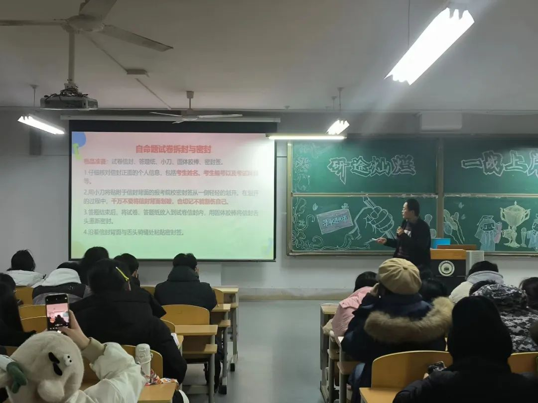 为鼓舞即将迈入考场的2024届考研学子,明确考研初试期间的注意事项,12月13日下午2138cc太阳集团官网入口召开2024年考研初试考前注意事项培训会,此次培训会由考研指导教师、党支部副书记李建永老师主讲,2024届全体考研学子参加。