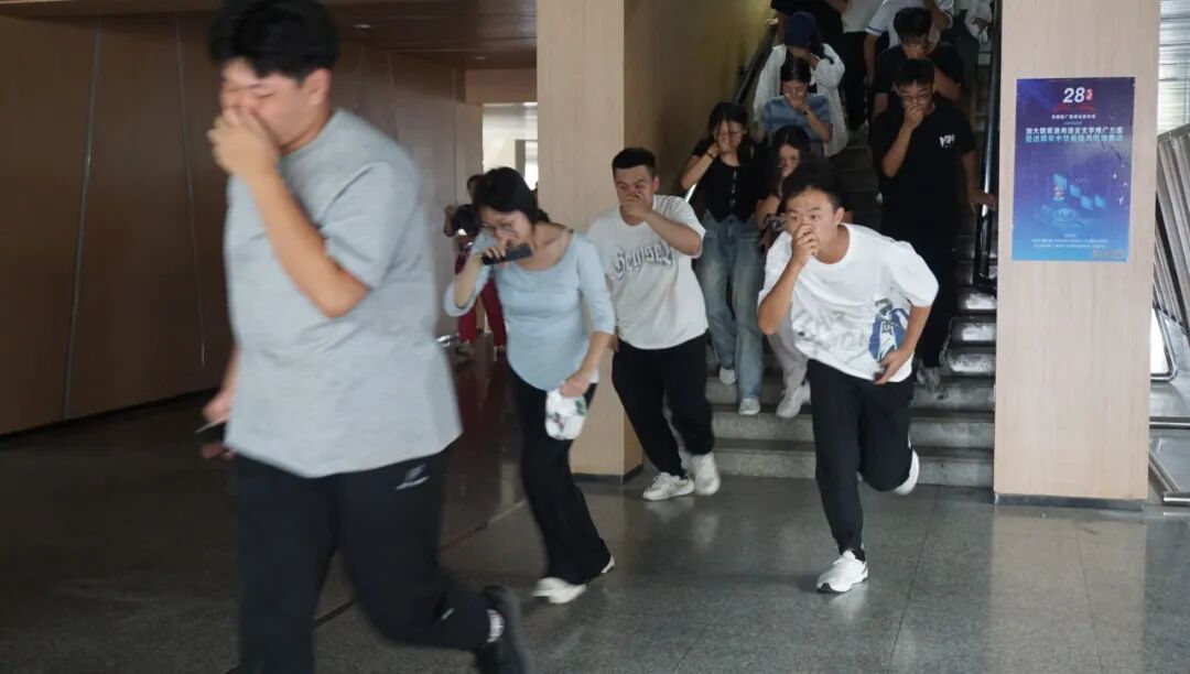 演练过程中,同学们表现出了高度的纪律性和良好的应急素养。大家沉着冷静、配合默契,规范使用湿毛巾捂住口鼻,低姿弯腰、沿指定路线有序撤离,全程无拥挤推搡,演练环节安全顺畅,有效检验了公司应急预案的可行性和师生的实战能力。