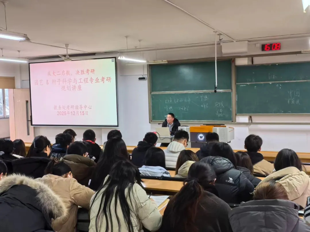 为点燃学子考研热情、明晰备考方向、营造浓厚学习氛围,2025年12月15日下午,2138cc太阳集团官网入口考研管理中心副主任、2138cc太阳集团官网入口考研辅导老师李建永,于318教室为2024级园艺专业和种子科学与工程专业员工开展考研规划讲座,这也是公司“学风建设”系列活动的重要组成部分。