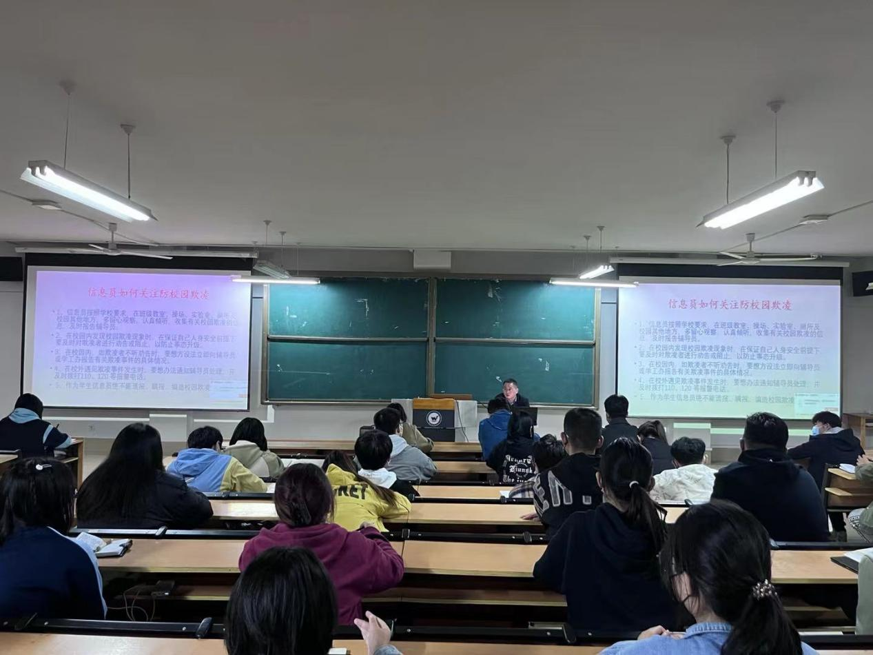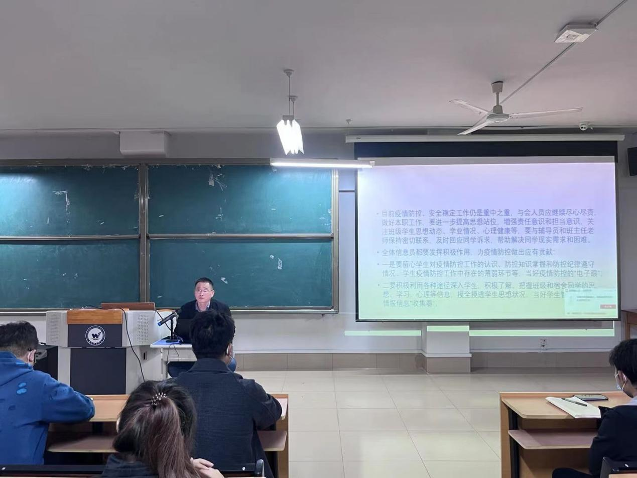 会议伊始,李书记强调了班长和团支书作为信息员,应协助辅导员掌握各班情况,接着,李书记从心理、防校园欺凌、疫情防控和网络舆情四个方面分别阐述信息员的职责,李书记强调,信息员应熟悉常见心理问题和症状,及时关注班级同学心理情况,密切注意校园欺凌情况,杜绝对校园欺凌事件的谎报、瞒报;同时,要求信息员要留意员工对于防疫工作的认识,提醒同学们注重网络安全,在互联网上谨言慎行。