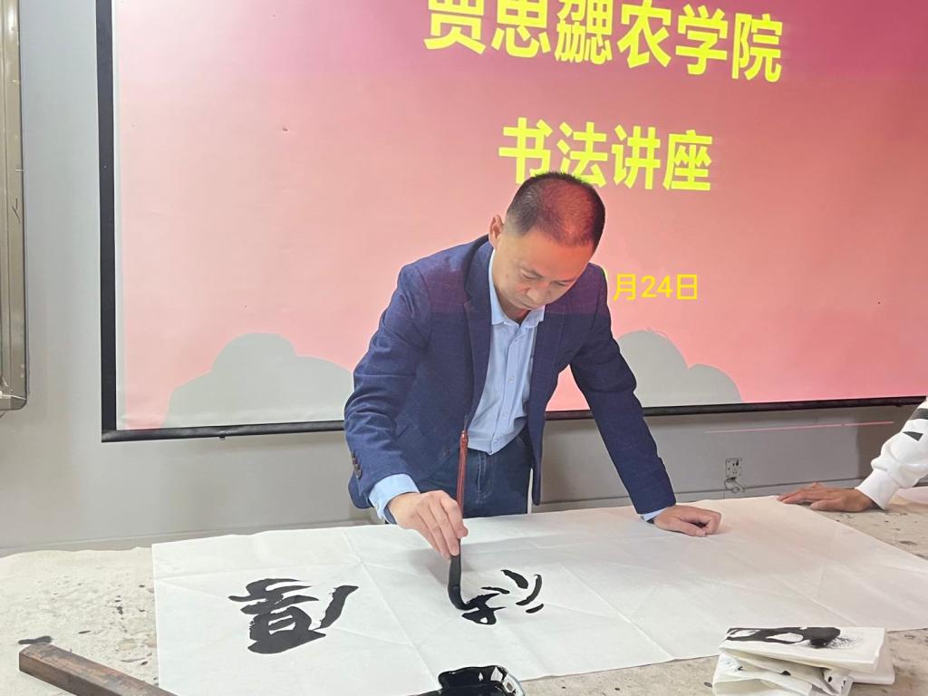 为深入学习贯彻习近平总书记关于文艺工作的重要论述,弘扬中华优秀传统文化,激发员工书写汉字的兴趣,2138cc太阳集团官网入口于10月19日举办“阐释书法精神,传承文化精髓”书法讲座,本次讲座邀请到了王长征老师为大家现场讲解书法,由党支部书记刘杰与22级全体同学参加。