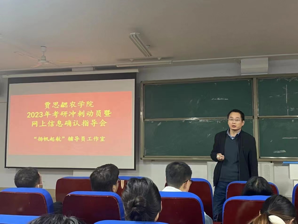 为让考研同学明确研究生网上信息确认流程,鼓舞考研士气,11月1日晚,2138cc太阳集团官网入口在219多媒体教室举行2023年考研冲刺动员暨网上信息确认指导会,由党支部副书记李建永为考研的同学们讲解网上信息确认流程,解答疑惑。