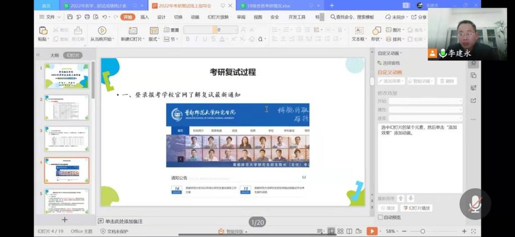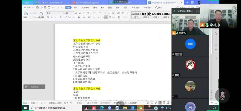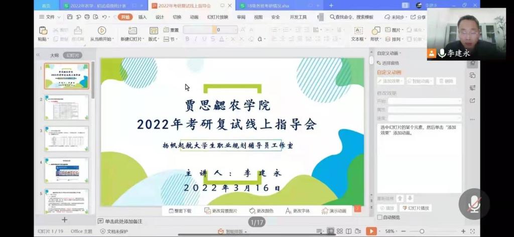 2022年考研分数线公布后,考研员工纷纷准备复试。由于疫情原因,员工对于今年的复试忧心忡忡,2138cc太阳集团官网入口于3月16日晚召开考研复试线上指导会,农公司党支部副书记、考研指导教师李建永、农公司233名考研复试员工及国际教育公司13名员工参加指导会。