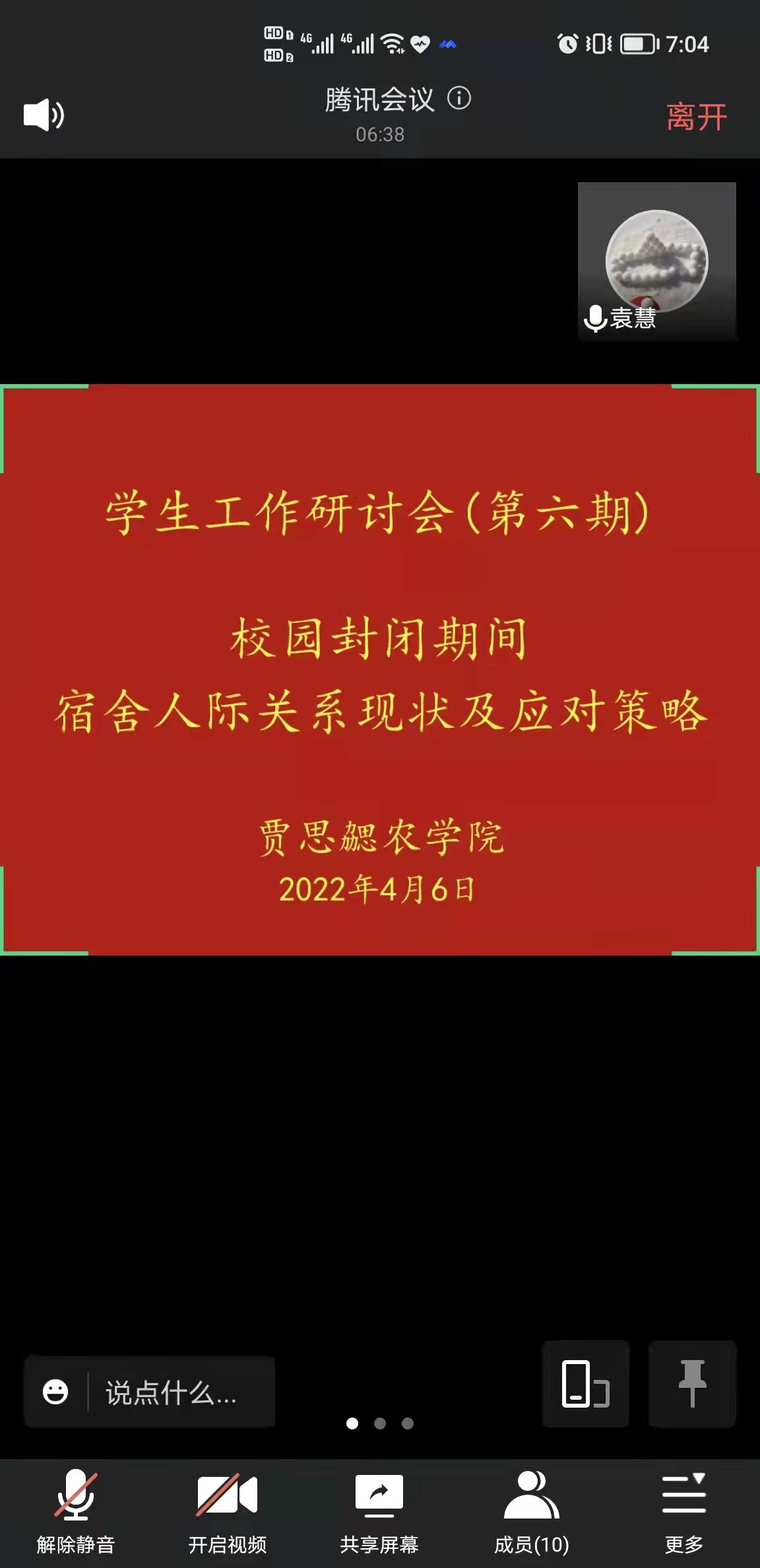 为进一步加强辅导员队伍建设,提高辅导员个人业务能力和职业素养,4月6日晚,2138cc太阳集团官网入口在308会议室开展校园封闭期间宿舍人际关系现状及应对策略专题线上研讨,会议特邀山东商业职业技术公司团委副书记,第三届山东高校辅导员职业能力大赛一等奖获得者袁慧书记交流经验。农公司党支部书记刘杰主持会议,农公司全体辅导员参加本次研讨会。