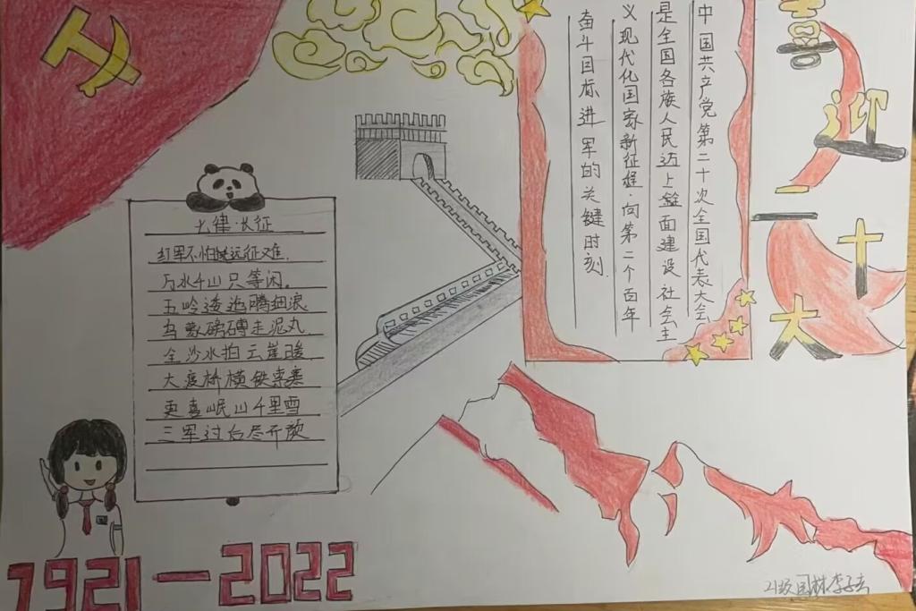 同学们积极报名,踊跃参与,在创作过程中开动脑筋,自主创新,设计出主题新明,内容生动,设计新颖,图文并茂的作品,每一份作品都饱含着同学们对党的无限热爱和美好祝福。他们不仅体会到活动的乐趣,也充分理解了活动的意义。图纸上明丽的色彩,让我们无不感受到他们对二十大的期待和对祖国由衷的祝福,展现出当代老员工崇高的爱国情怀。