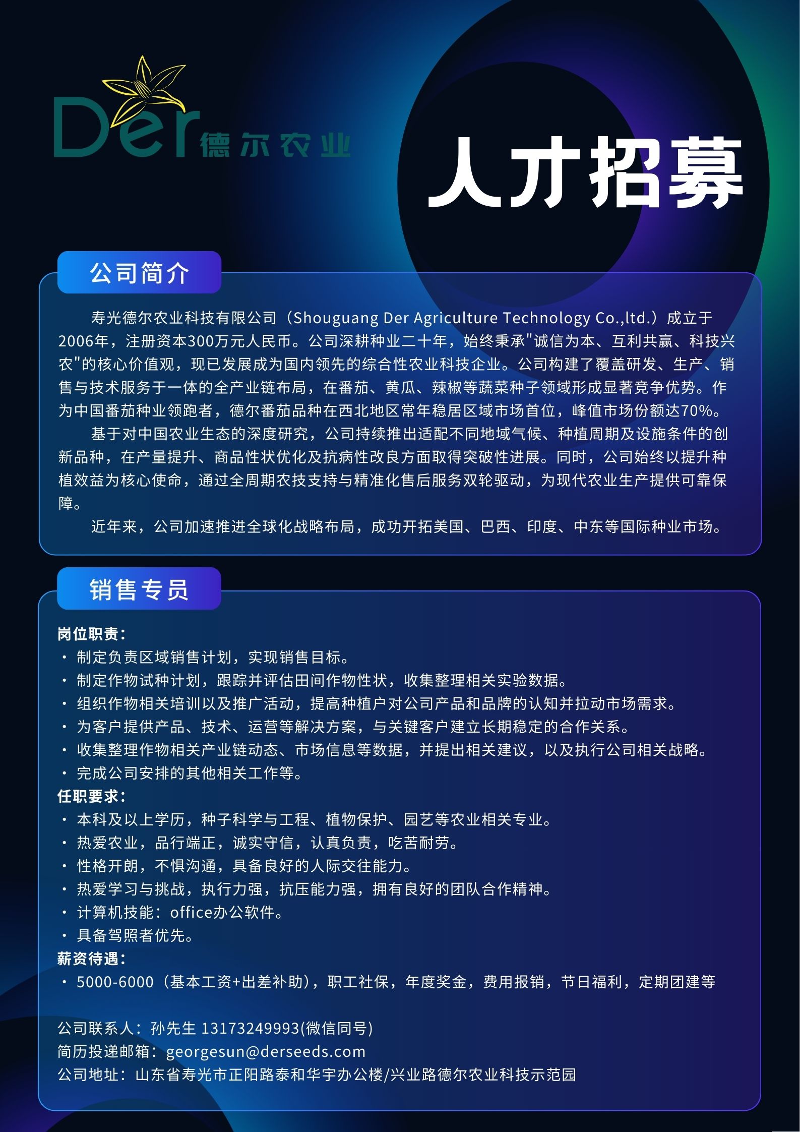 简历投递邮箱:georgesun@derseeds.com