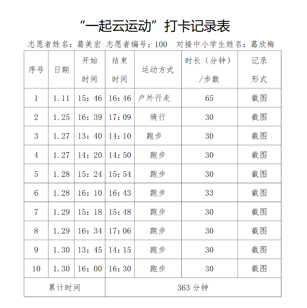 “生命不息,运动不止”,老员工志愿者引导并带领中小员工共同运动,每人每天运动不少于 30 分钟,运动形式、地点不限,鼓励利用互联网方式进行打卡记录和竞赛互动,在收获健康的同时,缓解了学业上的压力。