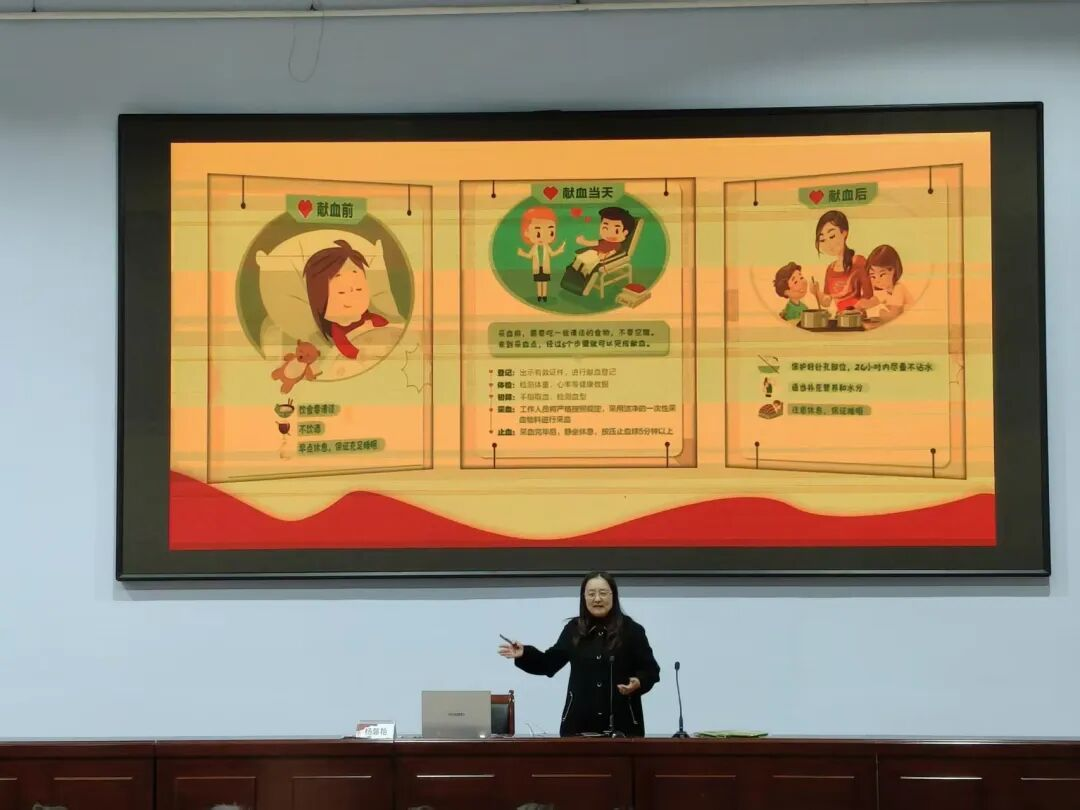 活动中,公司通过线上线下相结合的方式,向同学们普及了献血的基本知识、注意事项及重要意义,并邀请了专业医护人员潍坊市中心血站负责人杨馨艳以专业的视角进行现场讲解。同学们积极参与互动,现场气氛热烈,充分展现了当代青年学子的责任担当与爱心。